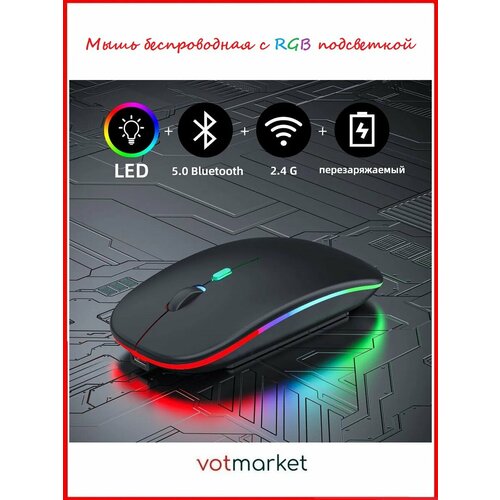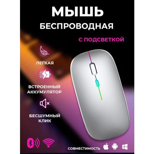 Бесшумная мышь, оптическая, беспроводная, с подсветкой, черная