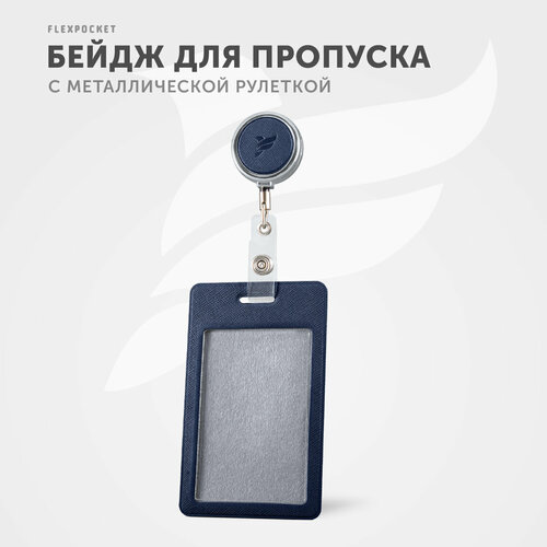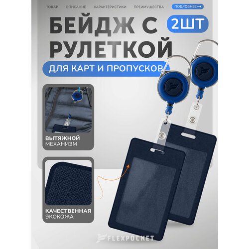 Комплект держателей для пропуска, бейджа, чехлы для карт доступа с рулеткой Flexpocket, цвет темно-синий 2 шт