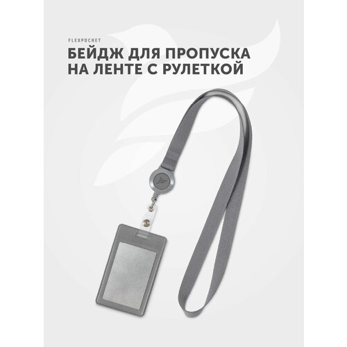Держатель для пропуска или бейджа Flexpocket, чехол для карт доступа с рулеткой, карман для проездного школьника, цвет светло-серый