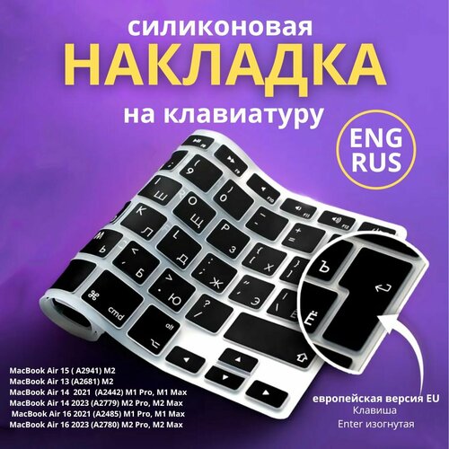 Защитная накладка на клавиатуру Apple Macbook Pro 14/16 2021-2023 / Air 13/15 M2 2022-2023 (RUS/ENG ) европейская раскладка