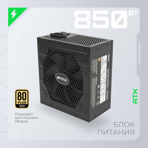 Блок питания Hiper ATX 850W HPB-850FMK2 80+ gold 24pin APFC 120mm fan 6xSATA Cab Manag RTL