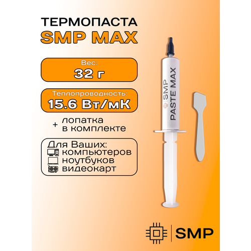 Термопаста SMP-МАХ 15.6Вт/Мк 32г для процессора, GPU, CPU, видеокарты, ноутбука, консоли, асика, светодиодов SmartMaster PRO
