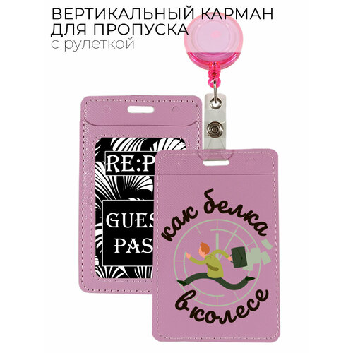 Чехол (бейдж) для пропуска и карт на рулетке с принтом "Squirrel in the Wheel"