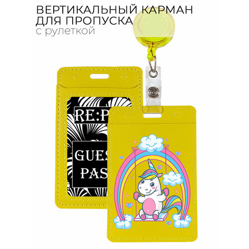 Чехол (бейдж) для пропуска и карт на рулетке с принтом "Unicorn"