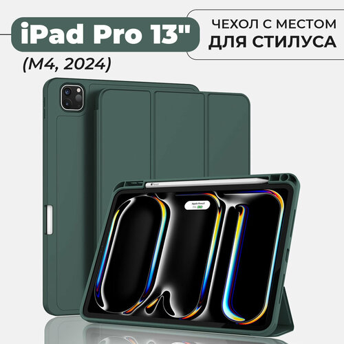 Чехол для планшета iPad Pro 13" (M4, 2024) с местом для стилуса, темно-зеленый