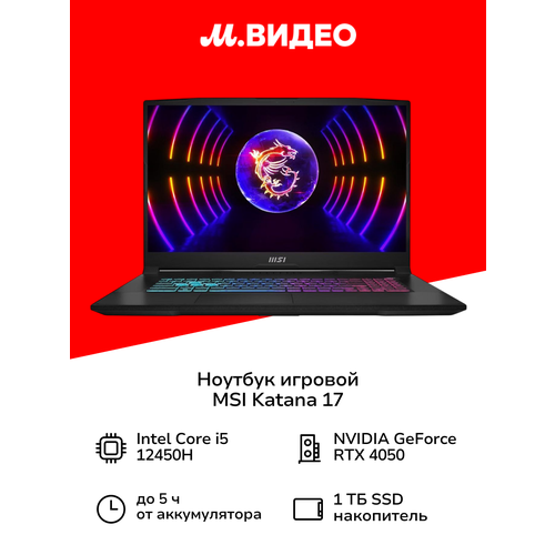 Ноутбук игровой MSI Katana 17 B12VEK-1446XRU-BB51245H16GXXDXX/17.3"/1920x1080 пикс./IPS/Core i5/RTX4050 6GB/16ГБ/1ТБ/не установлена