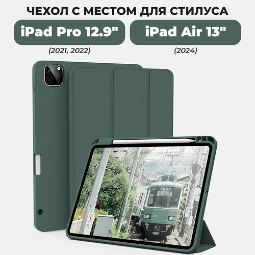 Чехол для планшета Apple iPad Pro 12.9" (2022, 2021) и iPad Air 13" с местом для стилуса, темно-зеленый