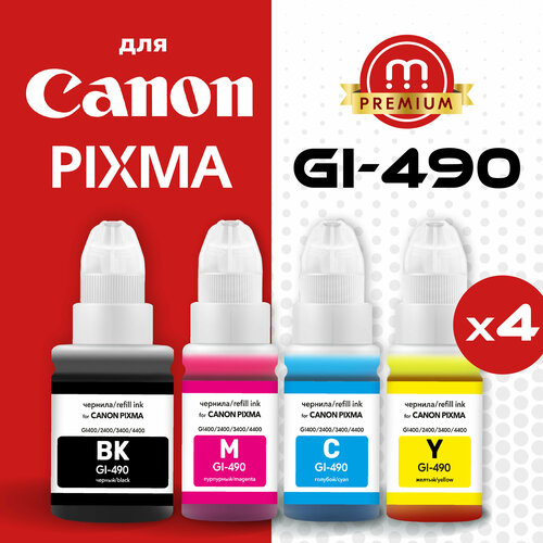 Чернила для Canon PIXMA GI-490, краска для заправки принтера G1000, G1400, G1411, G2400, G2410, G2411, G2415, G3400, G3410, G3411, G3415, G4400 и др.