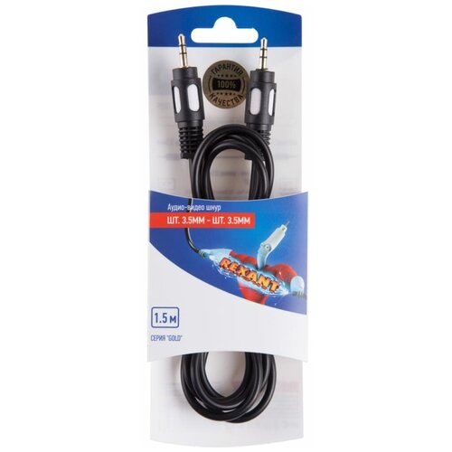 Rexant Шнур стерео штекер 3.5мм - стерео штекер 3.5мм 1.5м (GOLD) блист. Rexant 06-3009