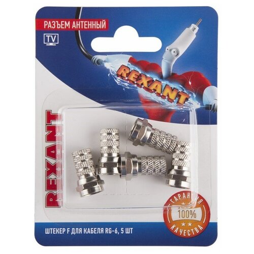 Rexant Разъем антенный на кабель штекер F для кабеля RG-6 (блист.5шт) Rexant 06-0004-A5