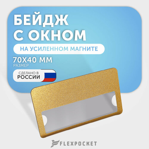 Бейдж горизонтальный на магните с окном Flexpocket, медицинский, для школьника, для персонализации сотрудников, цвет золото