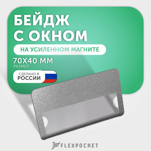 Бейдж горизонтальный на магните с окном Flexpocket, медицинский, для школьника, для персонализации сотрудников, цвет серебро