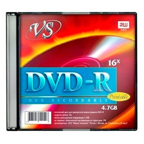 Диск VS DVD-R 4.7 GB 16x Slim Ink Print, 5шт