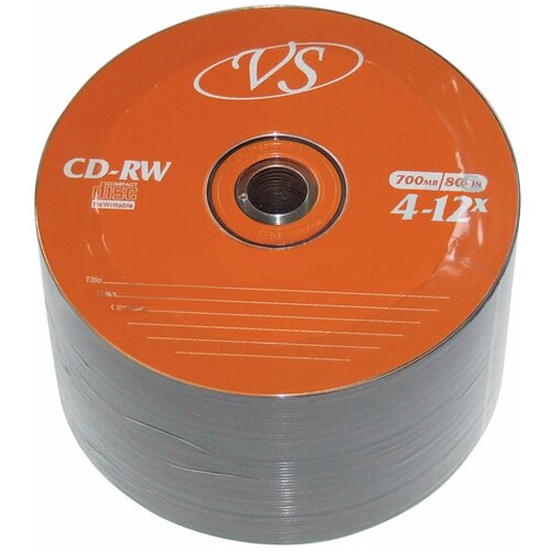 Диски CD-RW VS 700 Mb 4-12x Bulk (термоусадка без шпиля), комплект 50 шт, VSCDRWB5001 В наборе: 1компл.