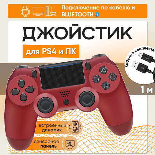 Геймпад для PS4 Красный/ Джойстик контроллер для Playstation 4, PC, Android, iOS + провод 1 метр