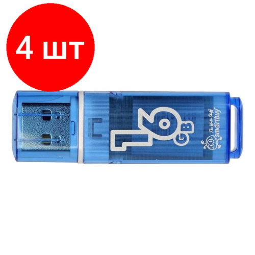 Комплект 4 штук, Флеш-память Smartbuy Glossy, 16Gb, USB 2.0, гол, SB16GBGS-B