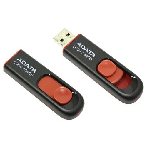 USB Flash A-Data Classic C008, 64GB, черный/красный [AC008-64G-RKD]
