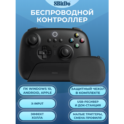 Беспроводной геймпад 8BitDo Ultimate 2.4G Wireless Controller для ПК, Android, Apple, черный, в чехле