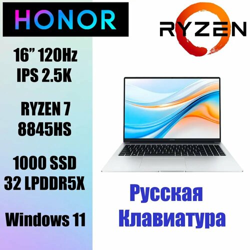 Ноутбук Honor MagicBook X16 Plus 2024/AMD R7 8845HS/32ГБ +1Тб/16" 2.5K 120Hz/ Win 11 RU/ клавиатура RU, серебристый