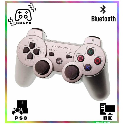 Беспроводной геймпад джойстик для Playstation 3 (PS3) и ПК, Silver/серебро.