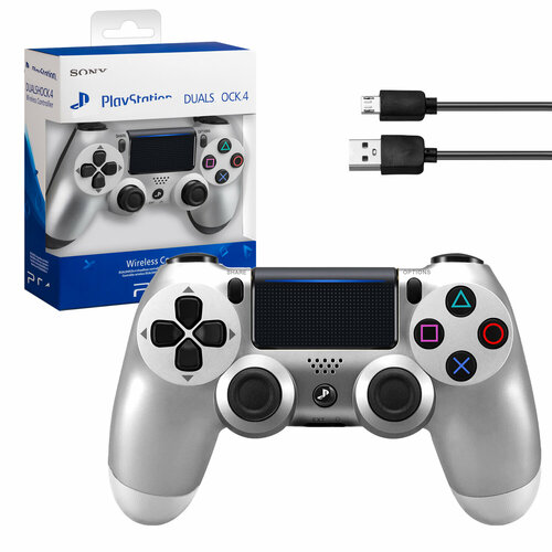 Беспроводной геймпад для PS4 с зарядным кабелем, Серебро / Bluetooth / джойстик для PlayStation 4, iPhone, iPad, Android, ПК /