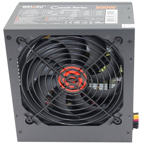 Блок питания Ginzzu CB500 12CM black,24+4p, PCI-E, 4*SATA, 3*IDE, оплетка MB, кабель питания