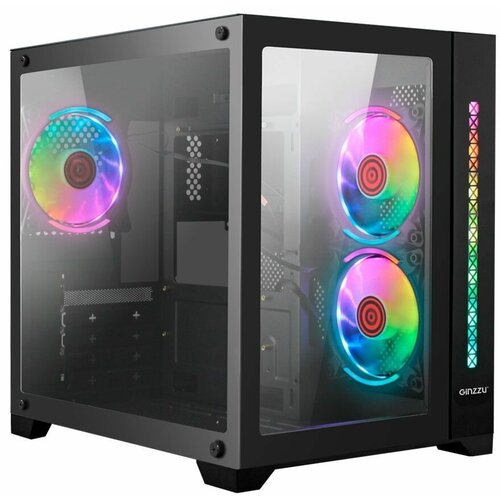 Корпус Ginzzu V350 mATX кубик, закаленное стекло, RGB подсветка, система охлаждения