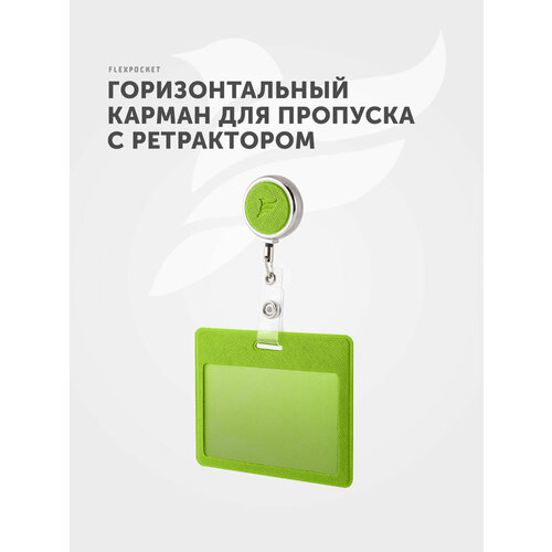 Держатель Flexpocket, горизонтальный, для пропуска, с ретрактором, экокожа Saffiano