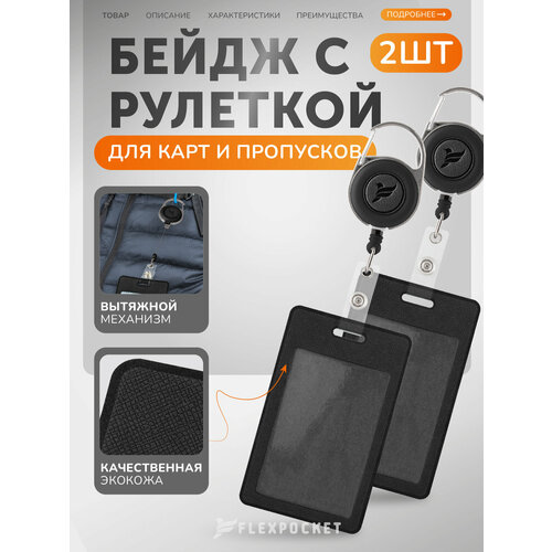 Комплект держателей для пропуска, бейджа, чехлы для карт доступа с рулеткой Flexpocket, 2 шт