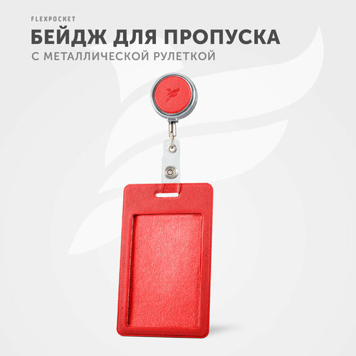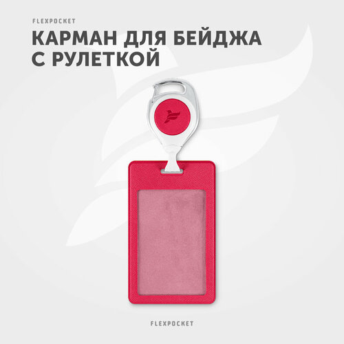 Держатель для пропуска или бейджа Flexpocket, чехол для карт доступа с рулеткой, карман для проездного школьника, цвет малиновый