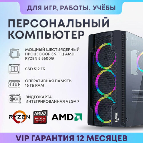 Системный блок AMD RVE (AMD Ryzen 5 5600G (3.9 ГГц), RAM 16 ГБ, SSD 480 ГБ, AMD Radeon RX Vega 7, Windows 10 Home), 1