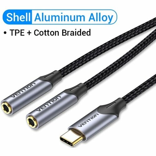 Переходник-разветвитель VENTION гибкий USB-C M/Jack 3.5 mm F x 2 - 0.3м