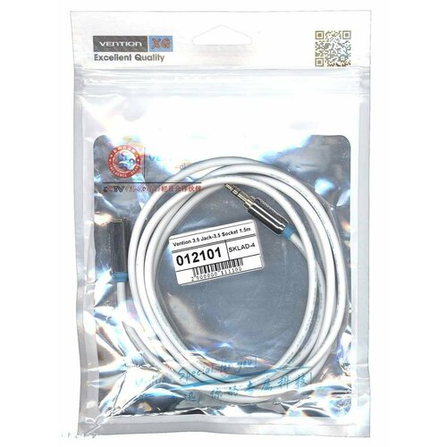 Кабель Vention 3.5 Jack-3.5 Socket 1.5m круглый