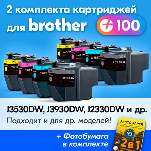 Картриджи для Brother LC-3619XL, Brother MFC-J3530DW, MFC-J3930DW, MFC-J2330DW (Комплект из 8 шт.), черный, голубой, пурпурный, желтый, увеличенный объем