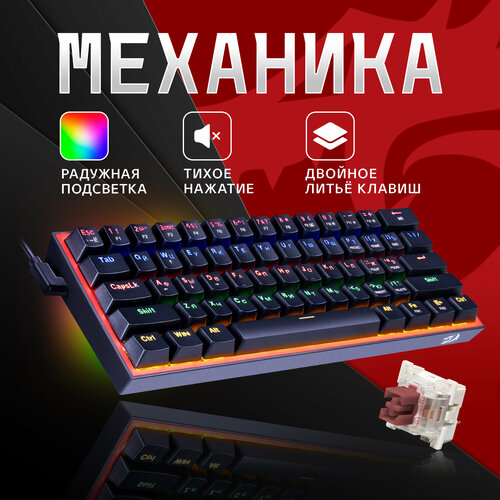 Игровая клавиатура механическая Redragon Fizz Радужная тихая, черно-красная компактная (60%)