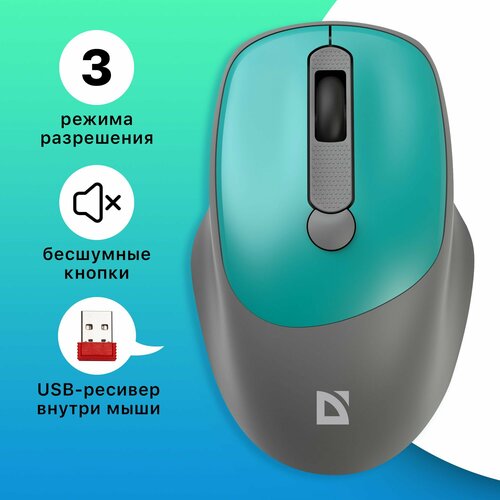 Беспроводная оптическая мышь Defender Feam MM-296 голубой,4D,800-1600dpi, бесшумная