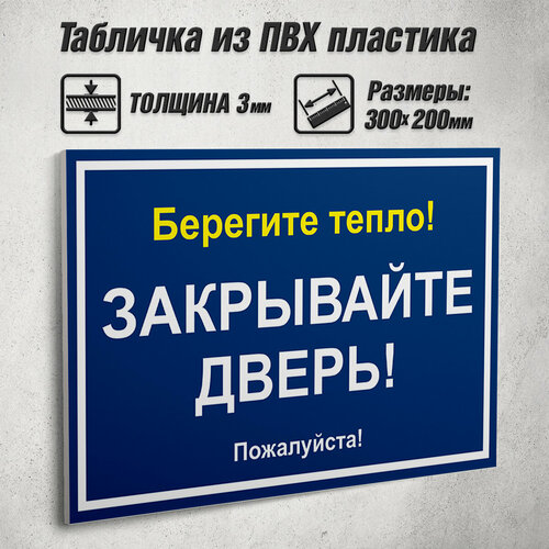 Информационная табличка "Закрывайте дверь, берегите тепло" / 30x20 см.