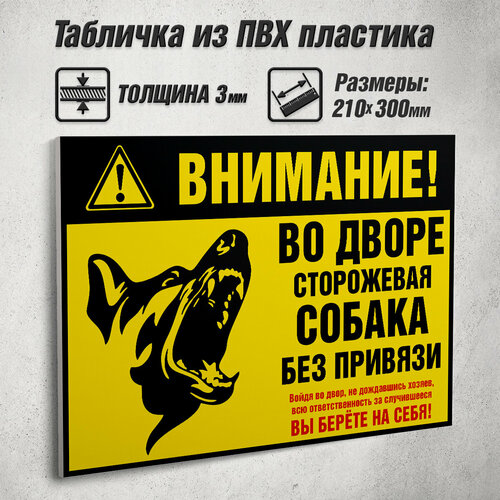 Информационная табличка "Внимание! Во дворе сторожевая собака без привязи" / 30x21 см.