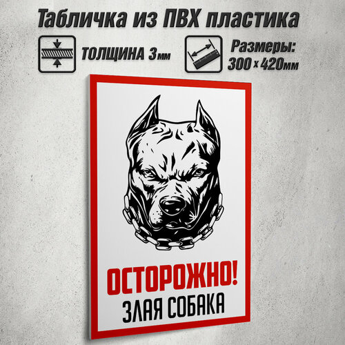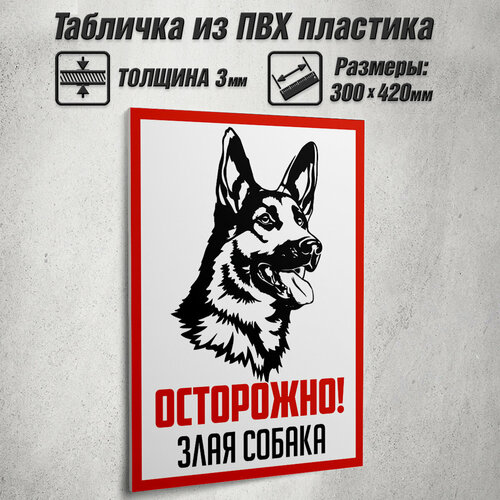 Информационная табличка "Осторожно! Злая собака" / 30x42 см.