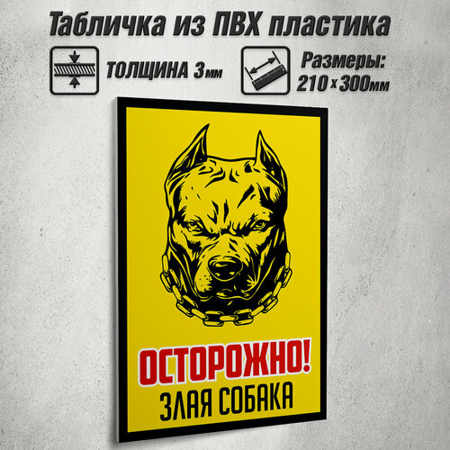 Информационная табличка "Осторожно! Злая собака" / 21x30 см.