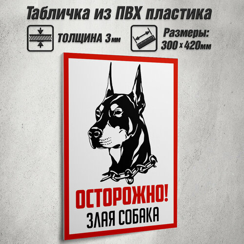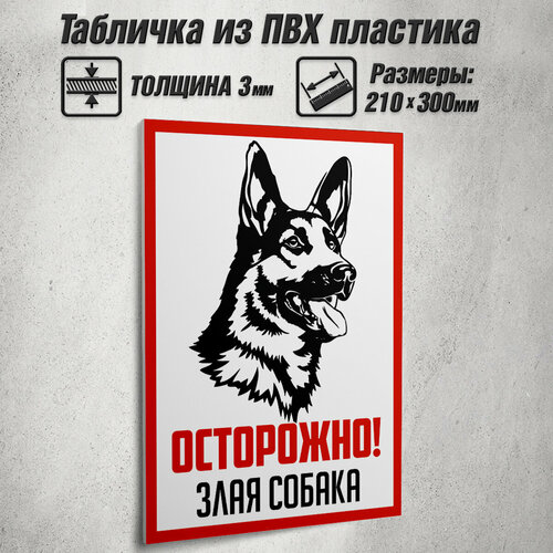 Информационная табличка "Осторожно! Злая собака" / 30x42 см.