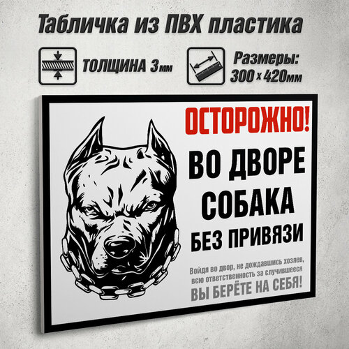 Информационная табличка "Осторожно! Во дворе собака без привязи" / 30x21 см.
