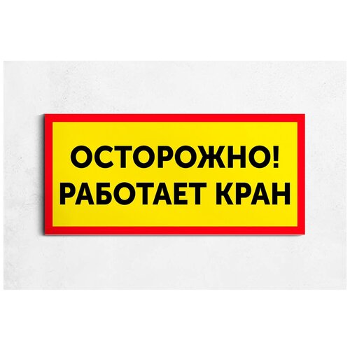 Табличка "Осторожно! Работает кран" на пластике 3 мм. / 30x13 см.
