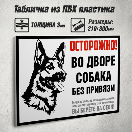 Информационная табличка "Осторожно! Во дворе собака без привязи" / 30x21 см.