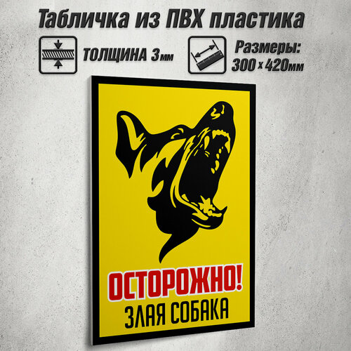 Информационная табличка "Осторожно! Злая собака" / 30x42 см.