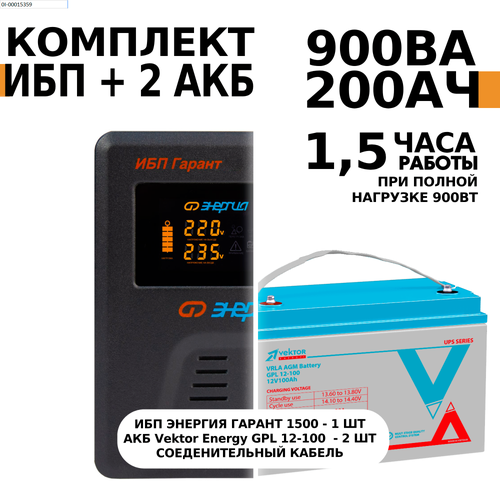Интерактивный ИБП Энергия Гарант 1500 в комплект с АКБ Vektor Energy GPL 12-100 2шт.