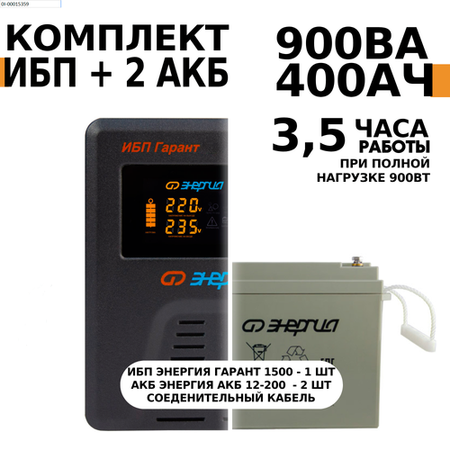 Интерактивный ИБП Энергия Гарант 1500 в комплект с АКБ Энергия АКБ 12-200 2шт.