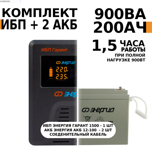 Интерактивный ИБП Энергия Гарант 1500 в комплект с АКБ Энергия АКБ 12-100 2шт.