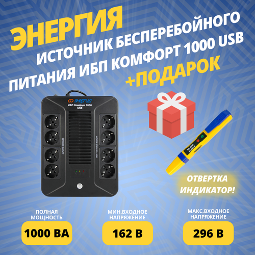 Источник бесперебойного питания Энергия ИБП Комфорт 1000 USB (Е0201-1003) + подарок