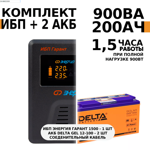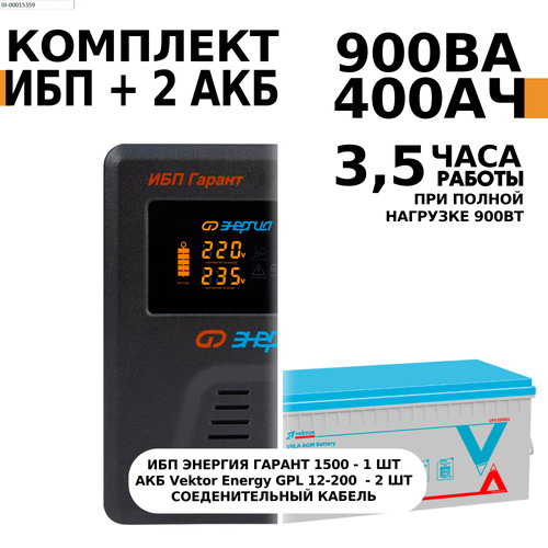 Интерактивный ИБП Энергия Гарант 1500 в комплект с АКБ Vektor Energy GPL 12-200 2шт.